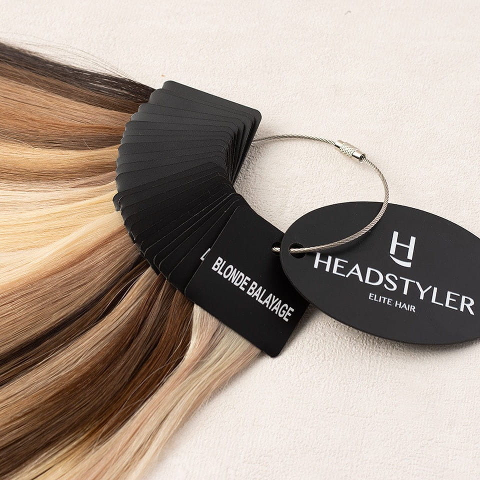 Elegancki i profesjonalny wzornik kolorów wykonany z najwyższej jakości włosów naturalnych, który zawiera aż 24 starannie dobrane odcienie. Nasz wzornik to niezastąpione narzędzie, które pozwala na precyzyjne dopasowanie koloru – idealnie sprawdzi się we współpracy z pełną gamą włosów, które oferujemy.